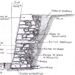 Quelle responsabilité nous incomba alors ! Donner de l’optimisme en France, quand on dit que le moral y est plus bas… qu’en Afghanistan… Alors, pour commencer, tout simplement, cette transhumance annuelle devint mensuelle, chaque dernier dimanche du mois ! Mais à peine six mois plus tard, les bulldozers saccageaient cette parcelle si incroyable que son image avait dépassé nos frontières nationales : ce « paysage français » allait gagner sa « promotion » immobilière… Aussi, dimanche 28 décembre 2008, avec la vingtaine de personnes ayant bravé le froid et la douleur, sur la dernière parcelle sauvage et libre de l’O.I.N., nous avons planté un néflier, illustration de la simplicité de notre postulat, et « avons pris autorité, commune, spontanée, aléatoire, précaire… libre » sur ces ultimes quatre hectares et quelques, torturés, souillés, pollués… mais sauvages et libres… « naturels » ! Il aura fallu à peine un an pour que l’engouement du public, le bonheur des intérêts que la Nature nous rend à l’exponentielle des soins que nous lui portons, pour que le rdv mensuel devienne hebdomadaire : tous les dimanches, qu’il pleuve, vente, neige, gèle ou fasse grand soleil ou sous canicule, un petit peuple hasardeux, aléatoire, bigarré, sans autre identité que l’infini et le commun, se rassemble entre deux, sept, vingt, trente… une fois cent trente… au Lieu que nous avons finalement Dit « Lieu-Dit du Champ de la Garde » puisque l’élément dominant de la parcelle est la caserne de la Garde Républicaine, un petit peuple de travail se rassemble et « Fabrique le P.R.É. ». Une paire d’années plus tard à peine, stagiaires, étudiants ou gens qui cherchent un autre sens à leur vie, ainsi que volontaires internationaux, et enfin salariés d’entreprises qui donnent leur fameuse journée « RSE – Responsabilité Sociale des Entreprises » occupent le Champ de la Garde… s’occupent du Champ de la Garde tous les jours et enfin les nuits ! Nous y opérons sans aucune machine ! Pas par je ne sais quel pittoresque, conservatisme ou écologisme réactionnaire, non ! Pour être en équilibre, en partage, en justesse et en justice avec le fonctionnement de la Nature, notamment sur la notion du temps… Ainsi de la méthode de travail : libre ! On a cinq minutes à donner au Champ de la Garde ? L’acte commis alors peut générer des merveilles ! Des jours entiers à donner ? On aura deux haricots… Deux haricots ?! Deux merveilles ! Une leçon sociale et politique permanente, d’une modestie vertigineuse… La plus belle illustration de cet infini commun est dans les terrasses en pierre-sèche que nous édifions depuis les premiers jours avec les espèces de cailloux que nous extrayons du remblai que nous avons trouvé : des pierres si lourdes qu’il a fallu être nombreux à les monter, à les dresser… ne tiennent que parce que des enfants, des vieux ont empilé pour les soutenir des petites pierres, des pierres moyennes, des pierres rondes, des pierres carrées, des pierres de toutes formes…